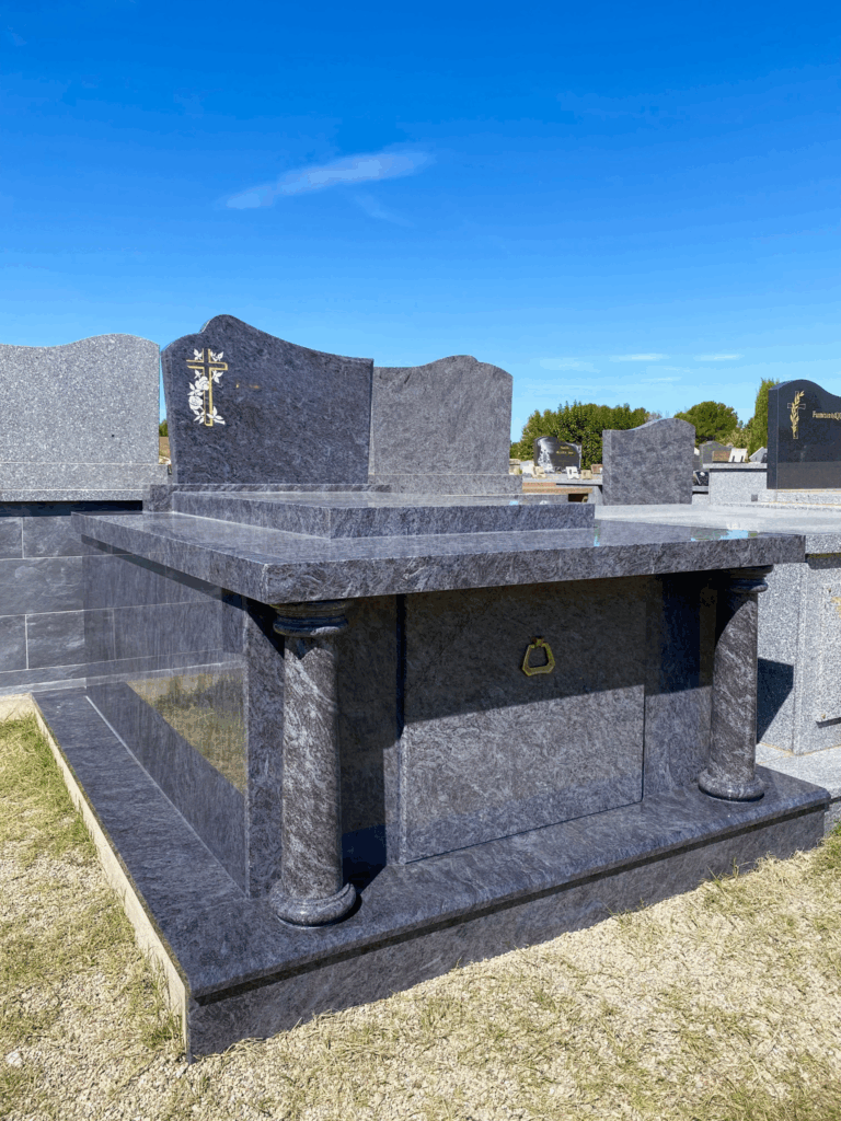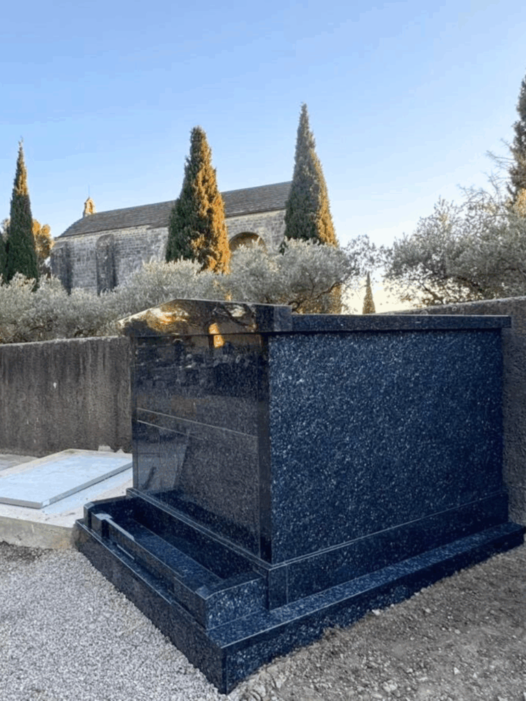Le Mass Blue est un granit bleu-gris profond au grain fin parvenant d’Inde ou du Brésil, apprécié pour son élégance et sa sobriété. Les granits de notre marbrerie funéraire sont résistants au gel, aux intempéries et au temps, le Mass Blue est taillé et poli en France, garantissant une qualité de finition irréprochable, tout en conservant ses origines naturelles à l’international.